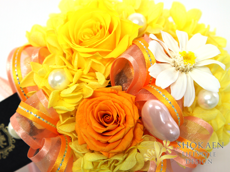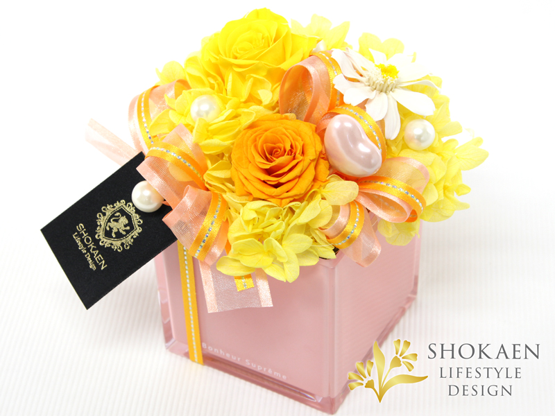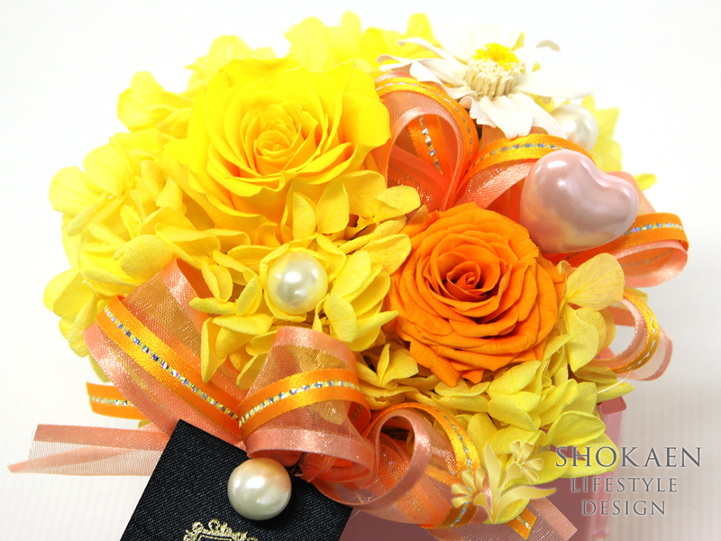 お花をたくさん詰め込んだ、プレセントボックスをイメージしたプリザーブドフラワーです。