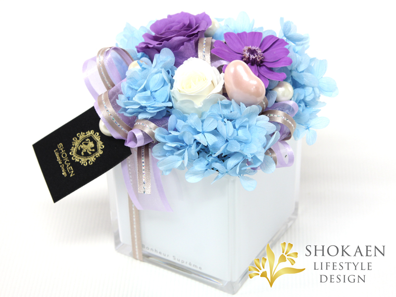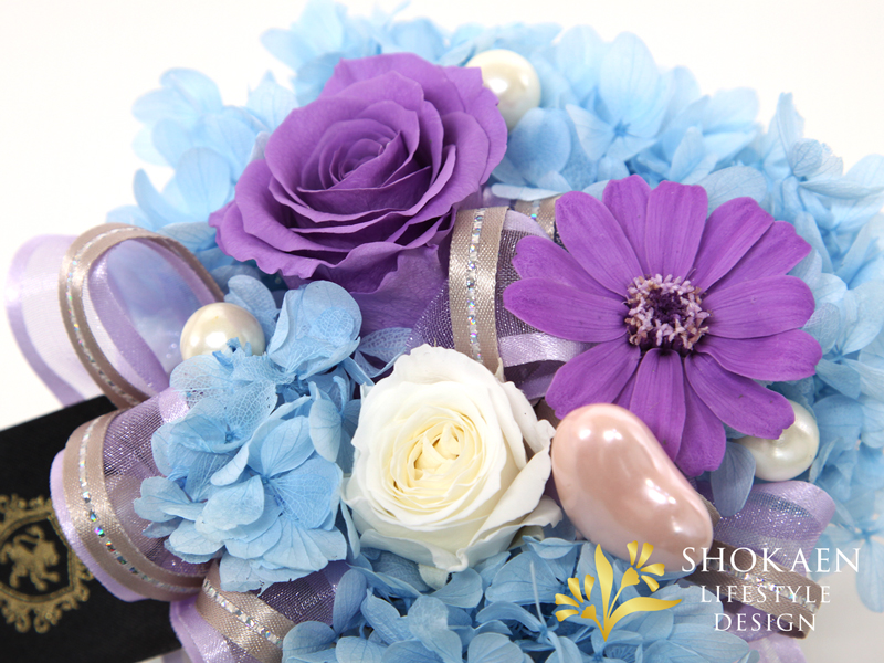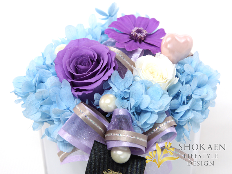 お花をたくさん詰め込んだ、プレセントボックスをイメージしたプリザーブドフラワーです。