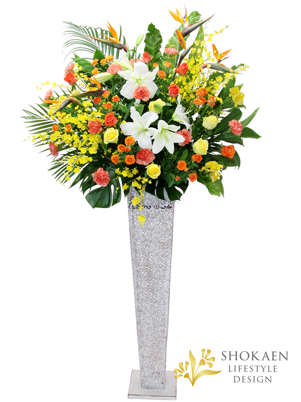 【スタンド花0063】御祝いスタンド花(アイアン型)1段(Y/OR)