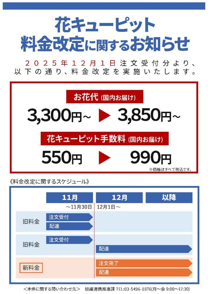 花キューピットは、2025年12月1日注文受付分より手数料改定となります。
